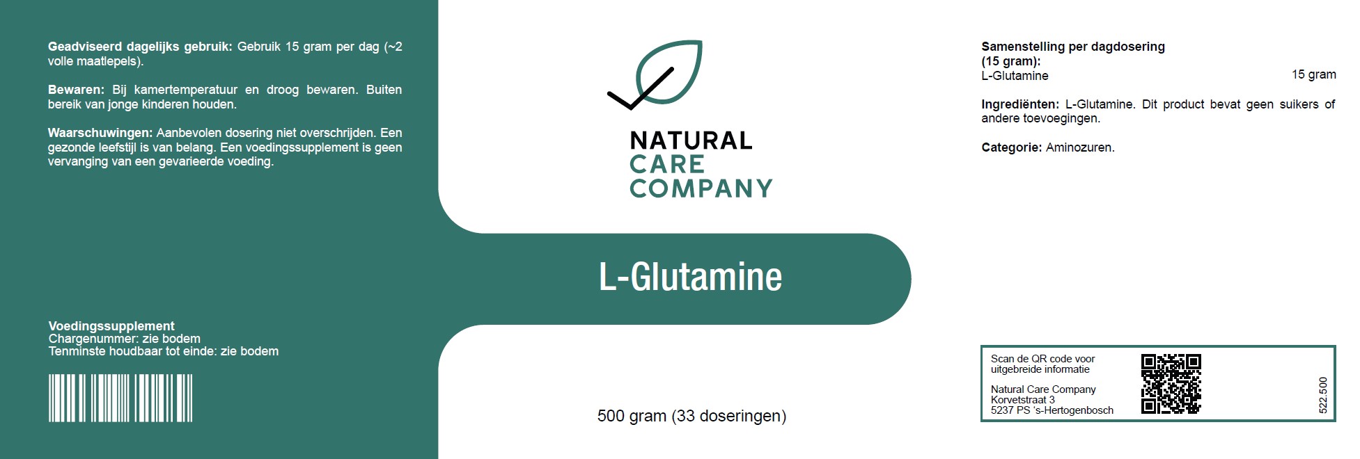 De L-Glutamine van Natural Care Company is 100% zuiver, zonder toevoegingen. Doordat het in poedervorm is, is het nog gemakkelijker te doseren, ook voor kinderen. Het is smaakneutraal, en is daarom makkelijk te mengen in water, sap, yoghurt of bv een smoothie.